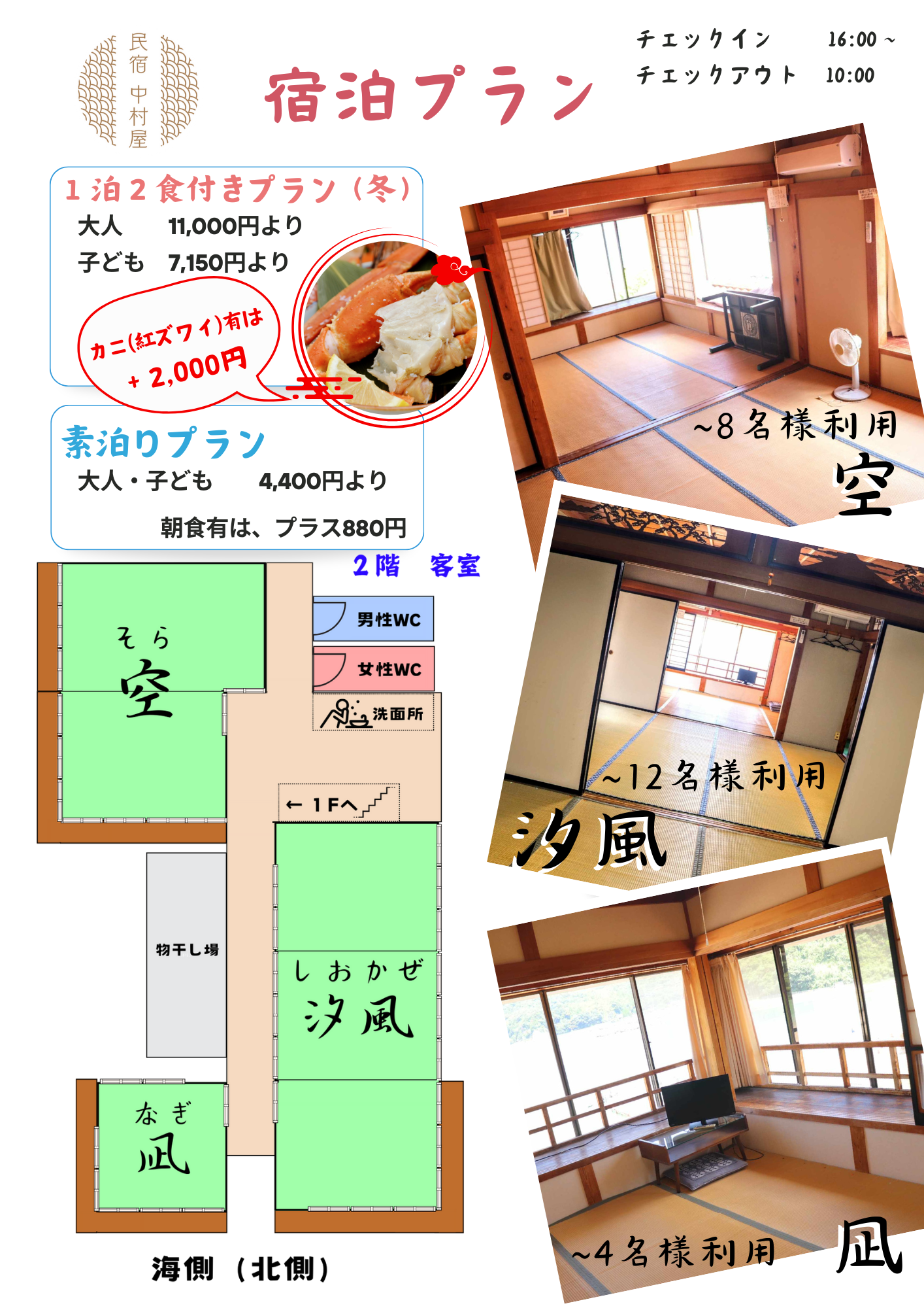 民宿中村屋の快適な宿泊施設で、自由な旅のひとときをお過ごしください。
